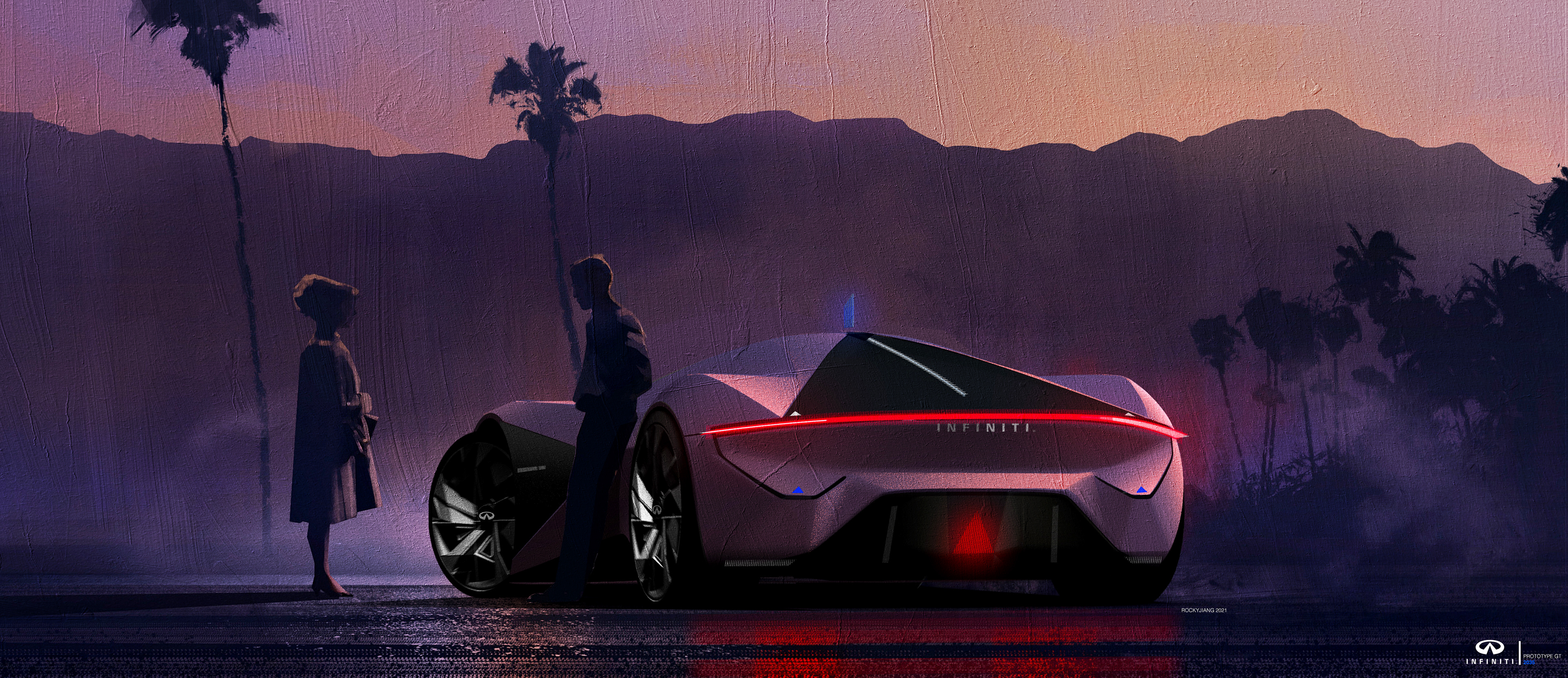 " THE INFINITI PROTOTYPE GT IS AN ART CENTER SCHOOL PROJECT WHICH IS MADE FROM MAY 2021 TO AUGUST 2021. THIS PROJECT IS AIMED TO DESIGN A FLAGSHIP GT FOR INFINITI TO ELEVATE THE VALUE OF THE BRAND AND REDEFINE THE GRAND TOURING EXPERIENCE. THE DESIGN PHILOSOPHY FOR THIS PROJECT IS " START WITH THE BASICS" WHICH MEANS WHEN I START DOING THIS PROJECT I THINK ABOUT VEHICLE ARCHITECTURE FIRST. THIS PROJECT TAKES ME ABOUT 4 MONTHS FROM SKETCHES TO MODEL "