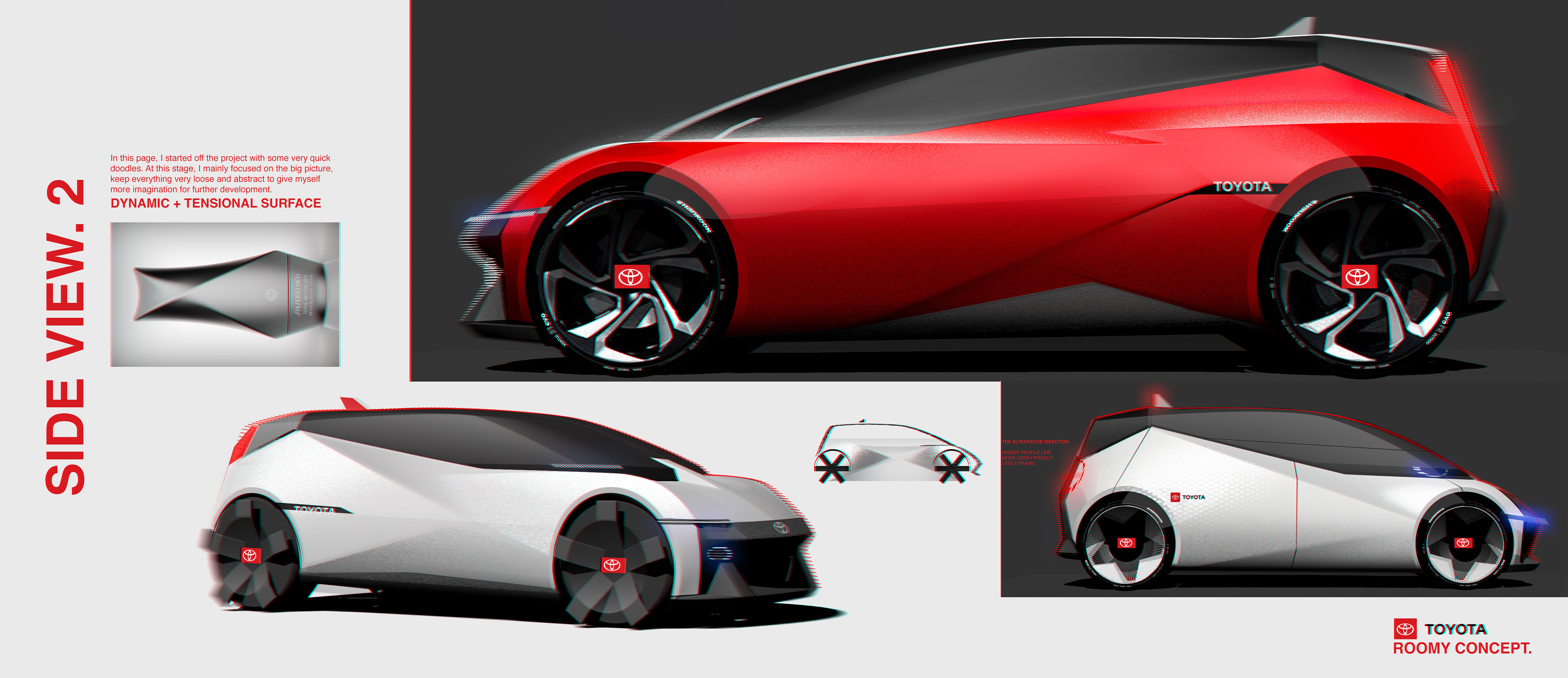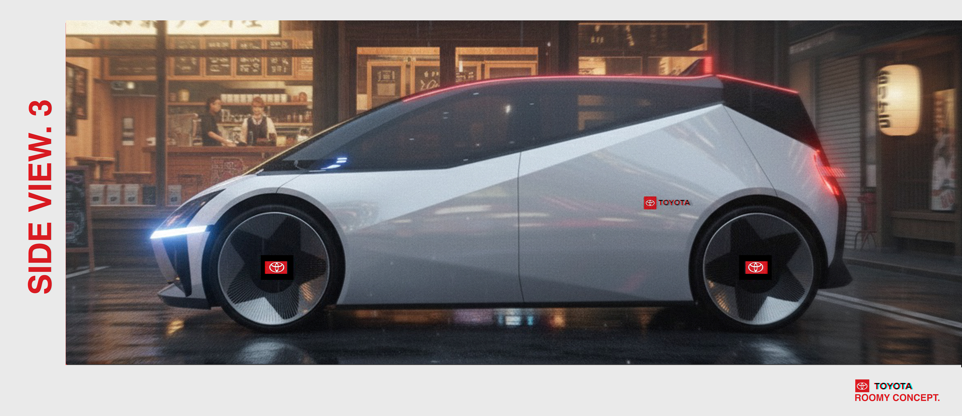 " WITH THE MISSION OF "YOUNG PEOPLE'S FIRST CAR",THE TOYOTA ROOMY CONCEPT AIMS TO BRING THE JOYFULNESS INTO TOYOTA'S US PRODUCT LINE AND FILL UP THE GAP BETWEEN YARIS AND COROLLA. THE KEY IDEA OF THIS CONCEPT IS "SMALL CAR, BIG FUNCTION" WHICH IS INSPIRED BY THE K-CAR IN JAPAN."